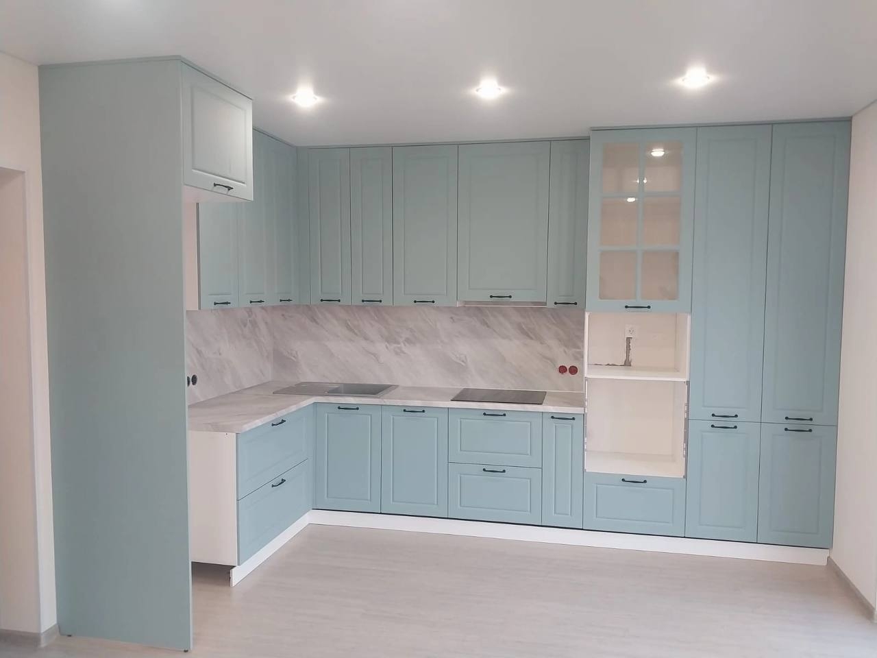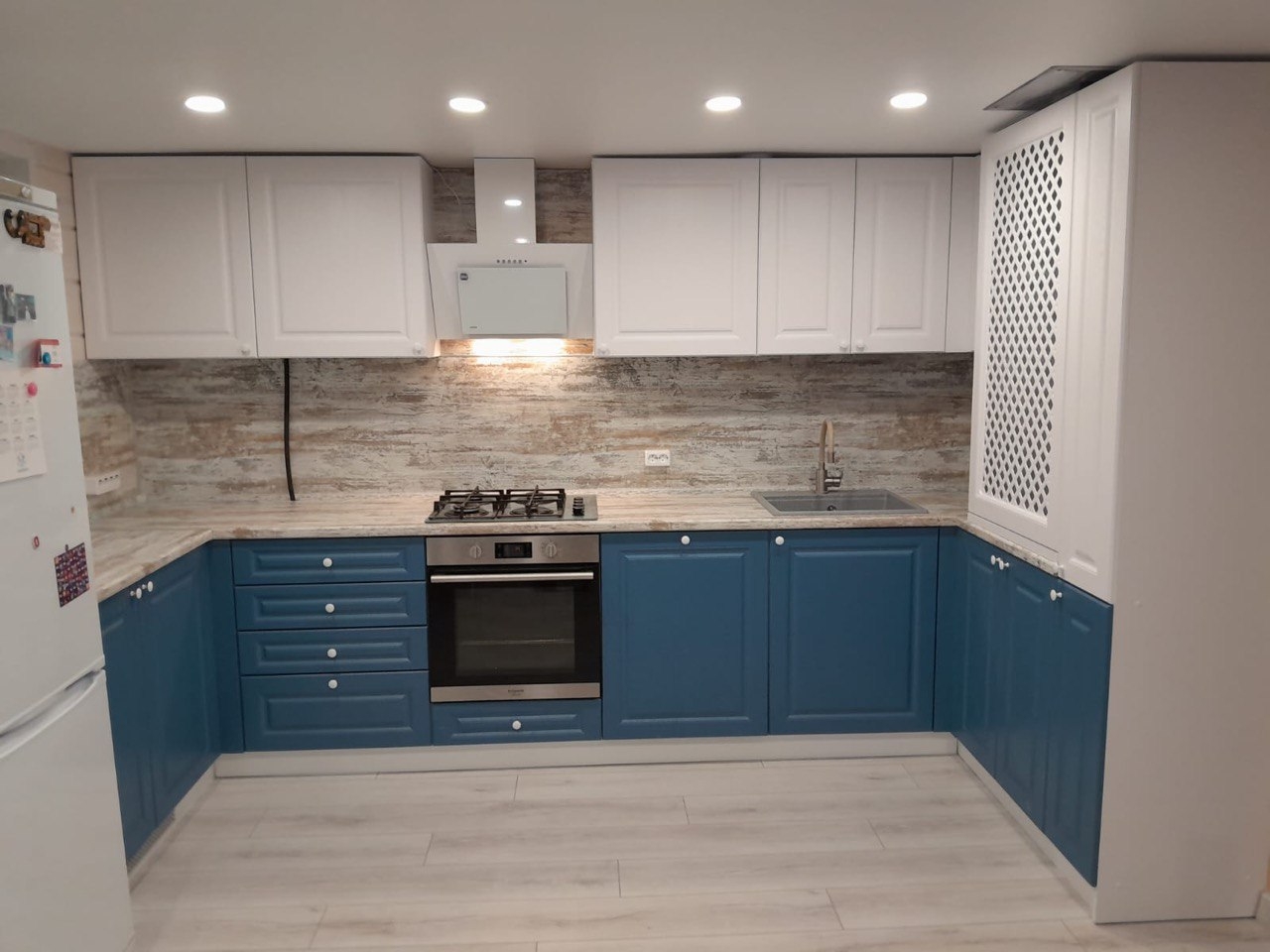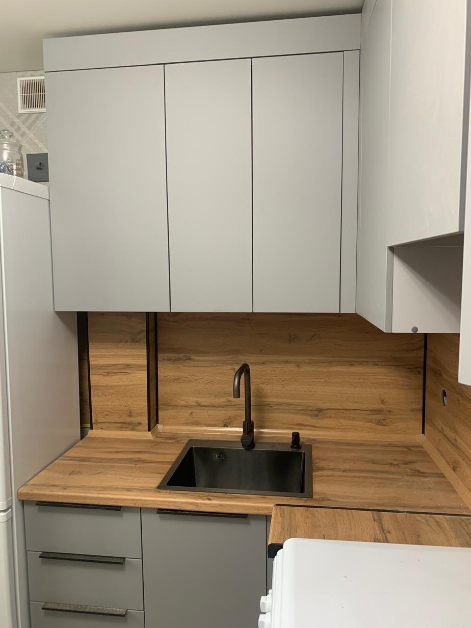 Глаза уже не те, не могу сам кухню собрать. Обратился к Мише, дак мы не то, что кухню собрали, мы ещё и технику установили, холодильник встроили, розетки вывели и в мебель спрятали. Столешницу сделали как барную стойку. Спасибо!